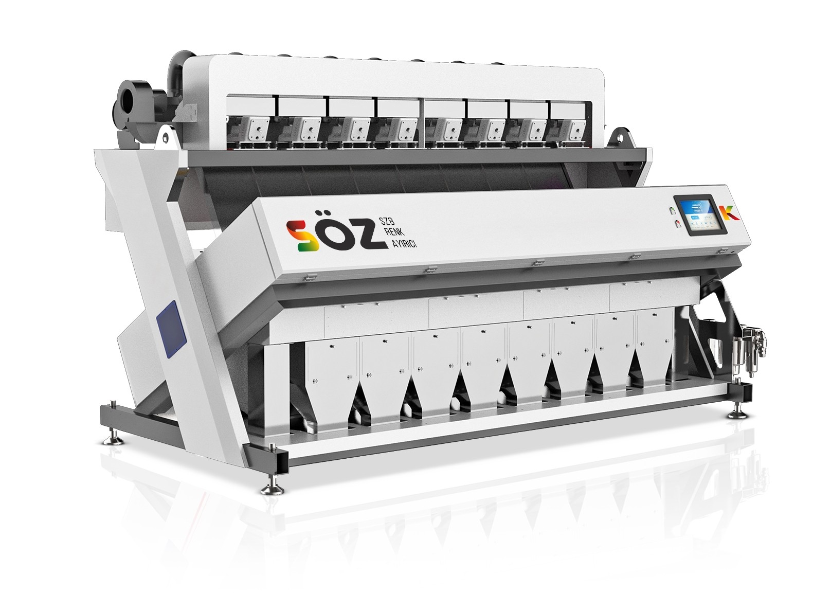 • Gelişmiş noktadan noktaya toz emiş sistemi - Bu sistem sayesinde her kanaldan ayrı şekilde toz emişi yapılıp, ayıklamayı kusursuz hale getirmekle birlikte ürün temizliğine yardımcı olur.